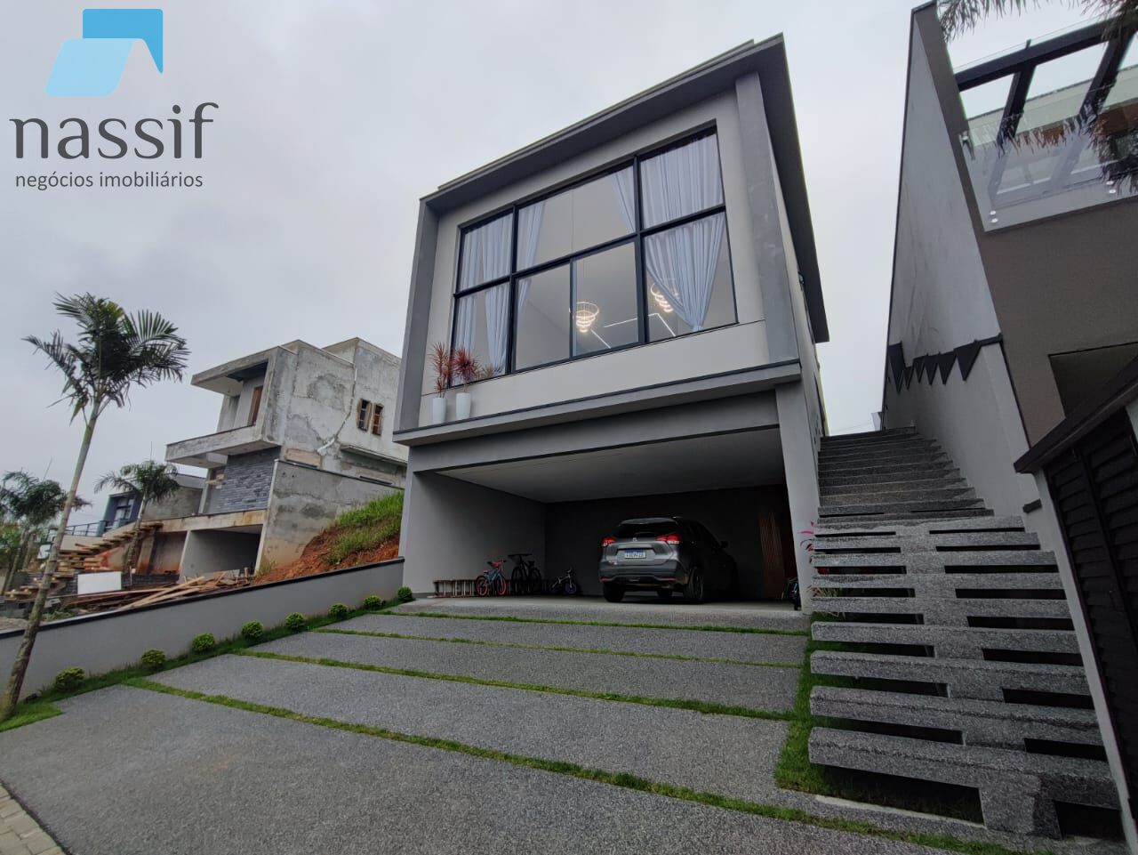 03 suítes sendo 01 suíte master com closet e varanda, sala íntima/home office, sala ampla com pé direito duplo, lavabo, cozinha americana, área gourmet, piscina aquecida, área de serviço, depósito. 06 vagas de garagem.