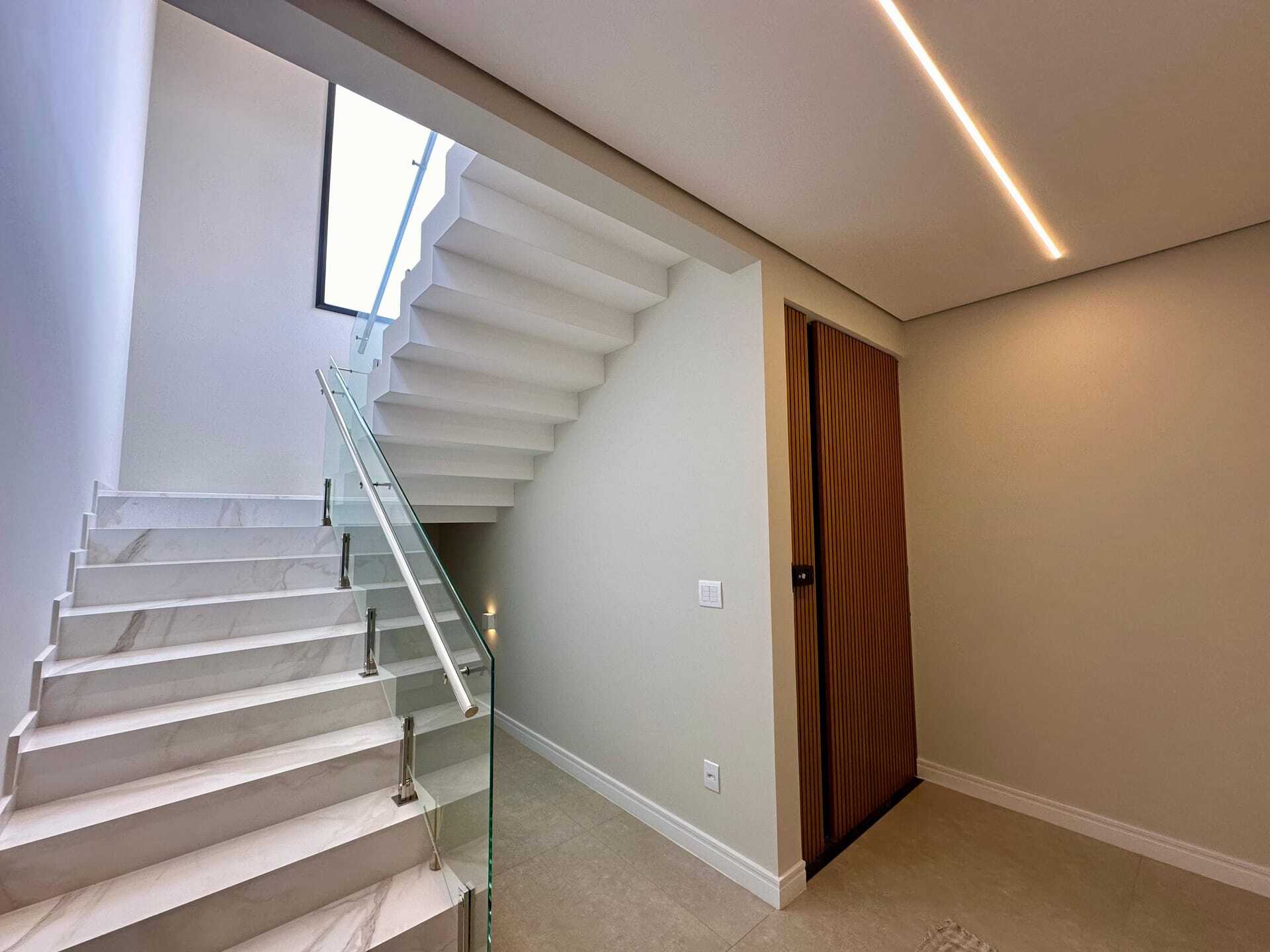 Sala ampla 02 ambientes com pé direito duplo, cozinha integrada, lavabo, quintal gramado com área gourmet, piscina, banheiro externo, lavanderia, 04 suítes sendo 01 delas no pavimento inferior. Ar condicionado já instalado.